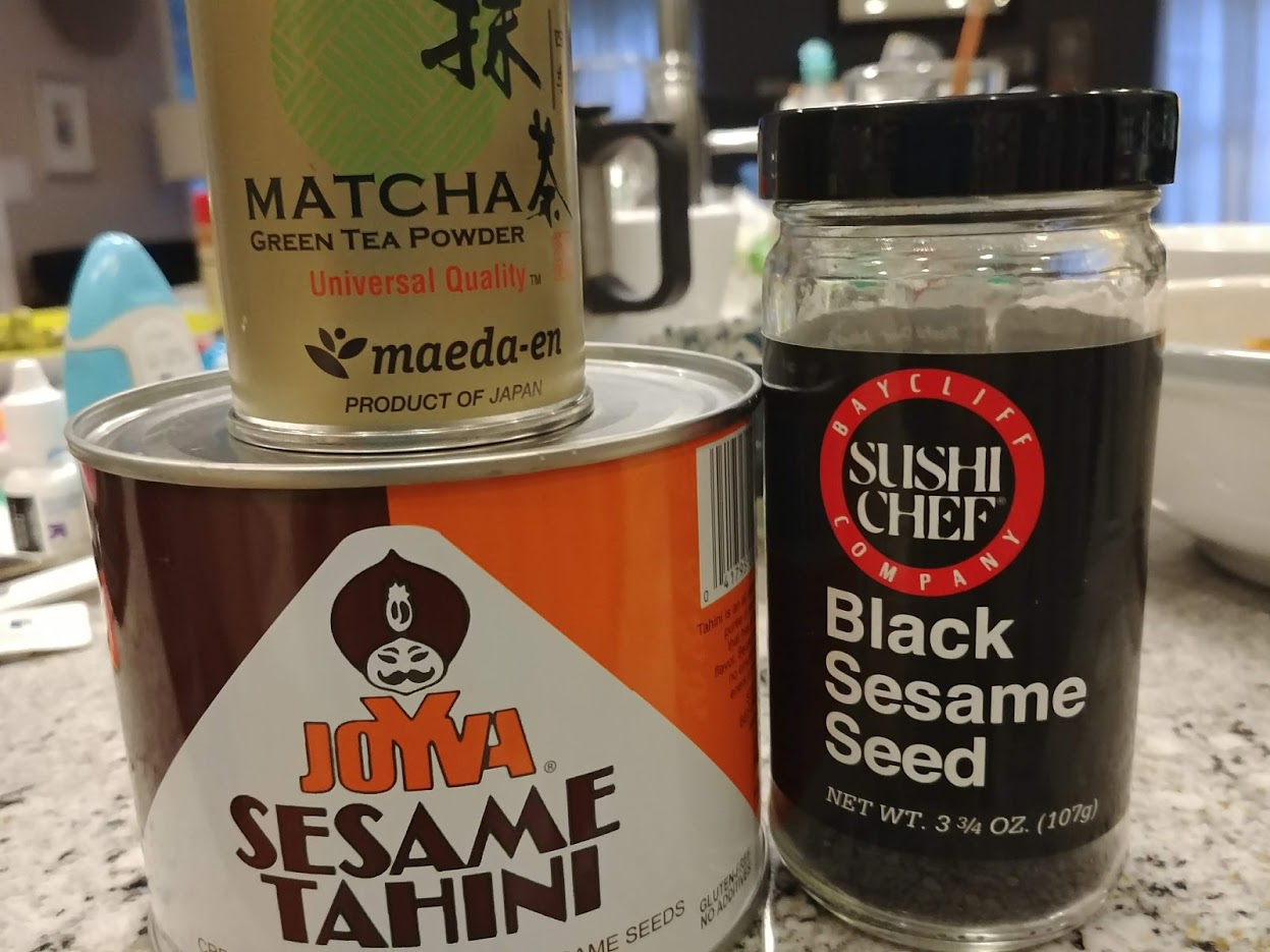 | I had most of the ingredients at home except tahini, black sesame seeds and matcha powder |