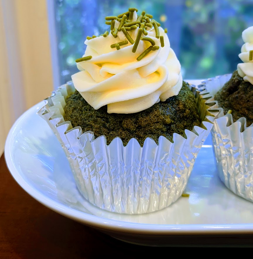 My daughter turned 9 today and she loves everything matcha flavored! I was going to make her these matcha cupcakes with red bean frosting, but then I didn’t have any sour cream at home. Instead, I found this new recipe and decorated with cream cheese frosting that I had leftover from pumpkin bars.